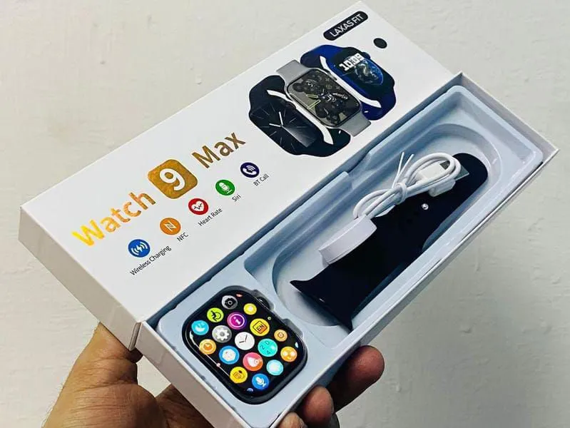 - The Watch 9 Max smartwatch offers a range of features and solid design. It comes with a **55.8 mm IPS display** and supports **Bluetooth calling**. The watch includes health monitoring features such as a **heart rate monitor**, **sleep quality tracker**, and **step counter**, though it lacks built-in GPS and oxygen level monitoring. With **multiple sports modes**, it's a versatile option for fitness enthusiasts.
